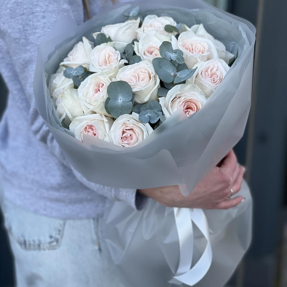 Букет из ароматных роз сорта Ohara c эвкалиптом в оформлении !