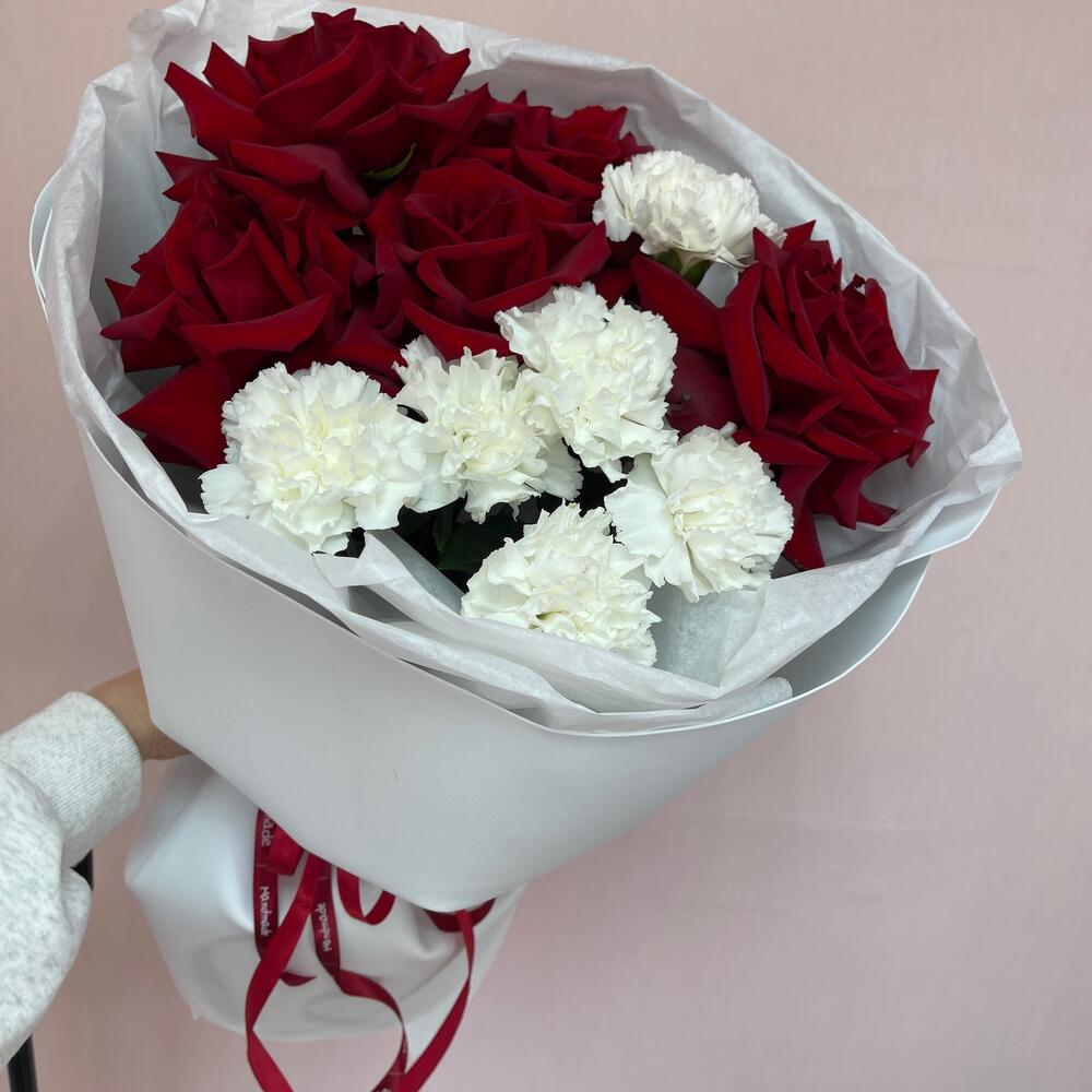Французская Роза красная и белый диантус в Бавлах